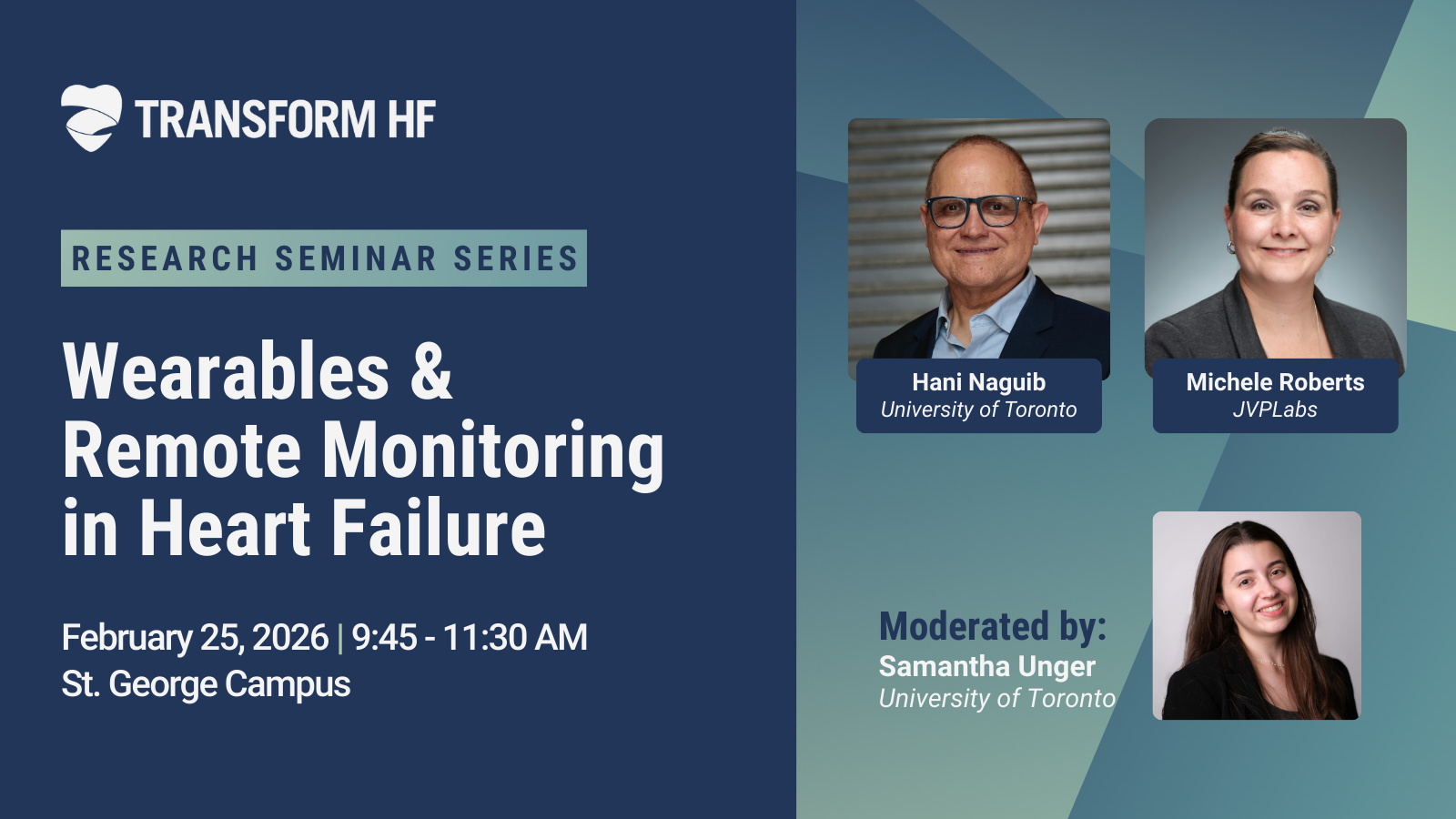 During Heart Month, TRANSFORM HF is launching a new Research Seminar Series, bringing together researchers, clinicians, industry partners, trainees, and people with lived experience to explore innovation in heart failure care. Register to join us!